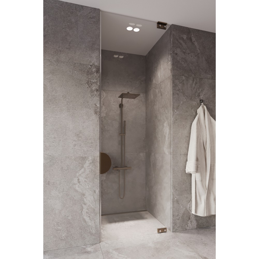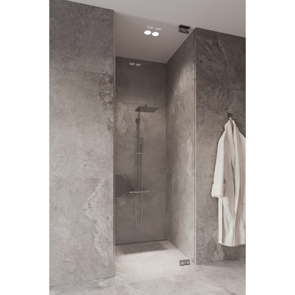 Duschtüren für Nischen aus der Premium-Kollektion mit verdeckten Pivot-Achsscharnieren.